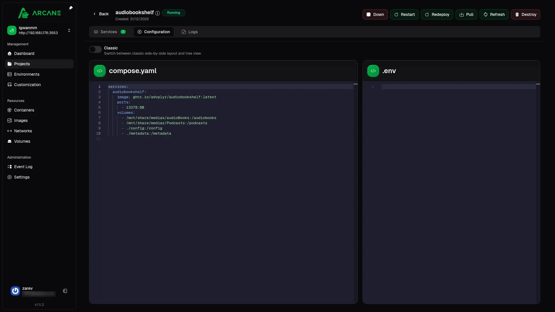 nano compose.yml- Collez le compose généré par Arcane et modifié par vos soins.