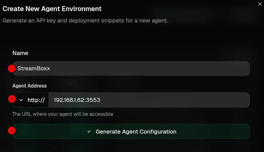 - 2 => Ajoutez l'URL de votre agent, bien souvent : ip:3553 en prenant soin de remplacer ip par l'ip de votre serveur.