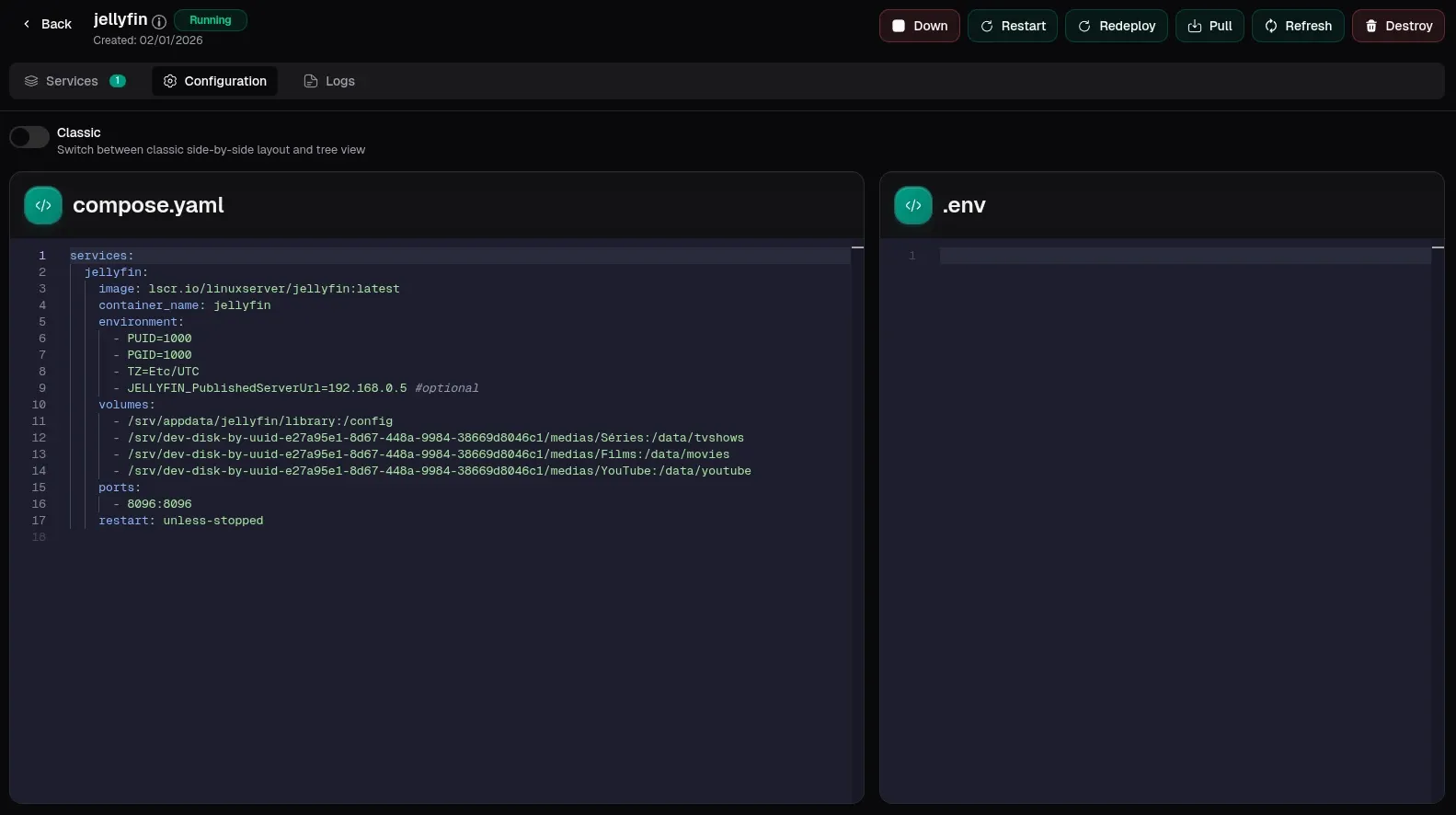 Il est possible de gérer les compose de vos containers existants, "à la Portainer" :