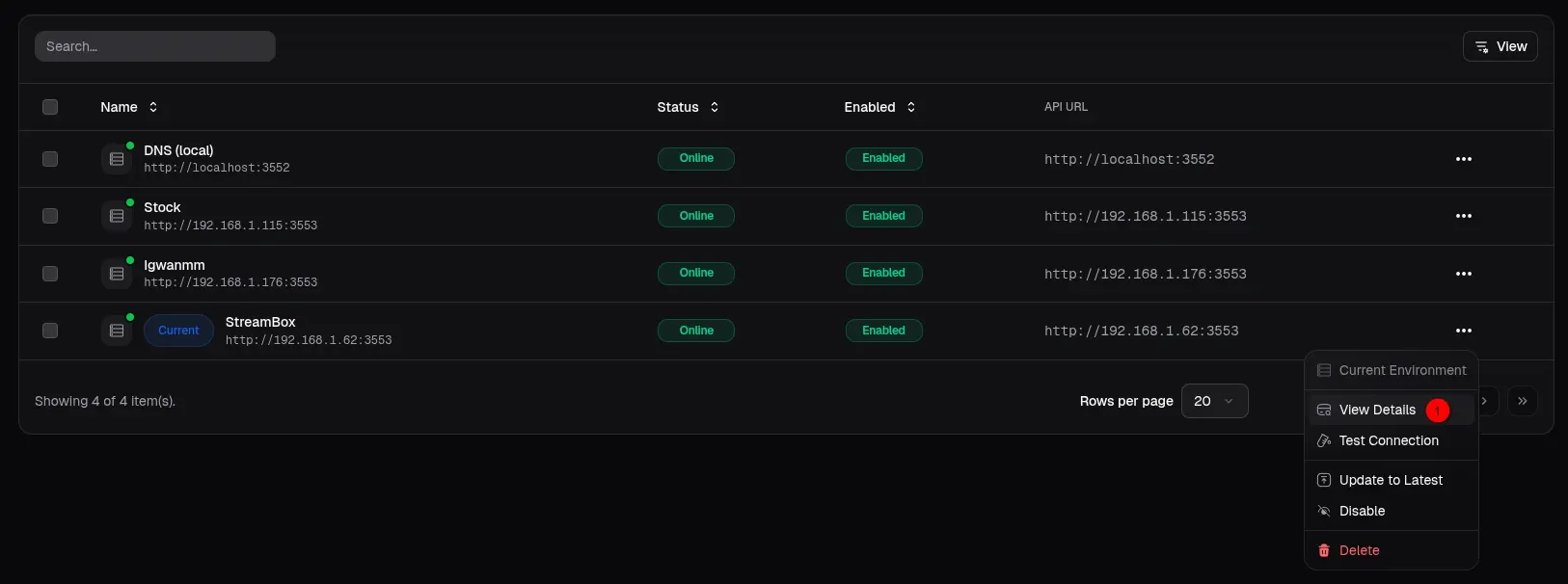 Maintenant il faut retourner sur votre instance Arcane et éditer chaque serveur en cliquant sur View Details :