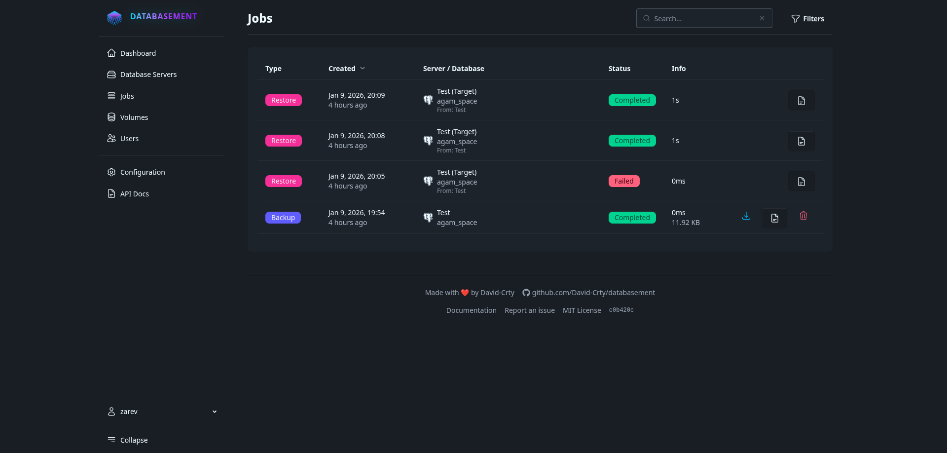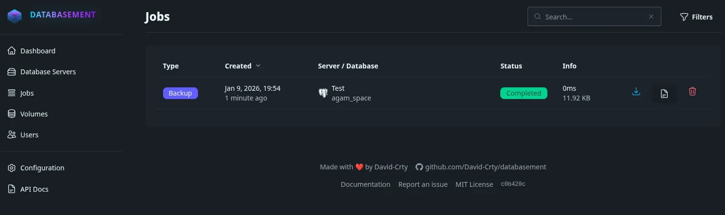 Aujourd'hui nous allons parler de Databasement ! Une application qui va veiller à sauvegarder vos bases de données, de manière automatique, avec rétention, le tout facilité par une belle interface (à mon idée) bien pensée.
