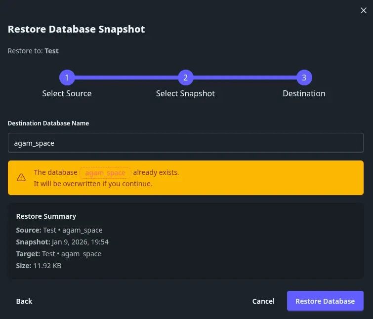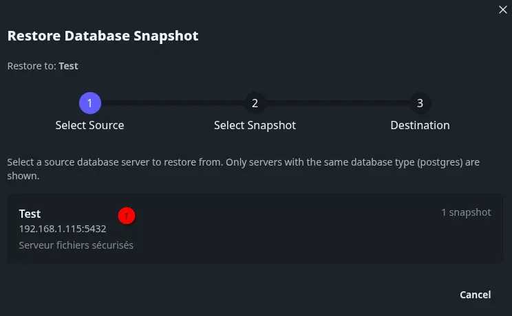 - Restauration inter-serveurs : Restaurez des instantanés de la production vers la préproduction, ou entre tout serveur compatible.