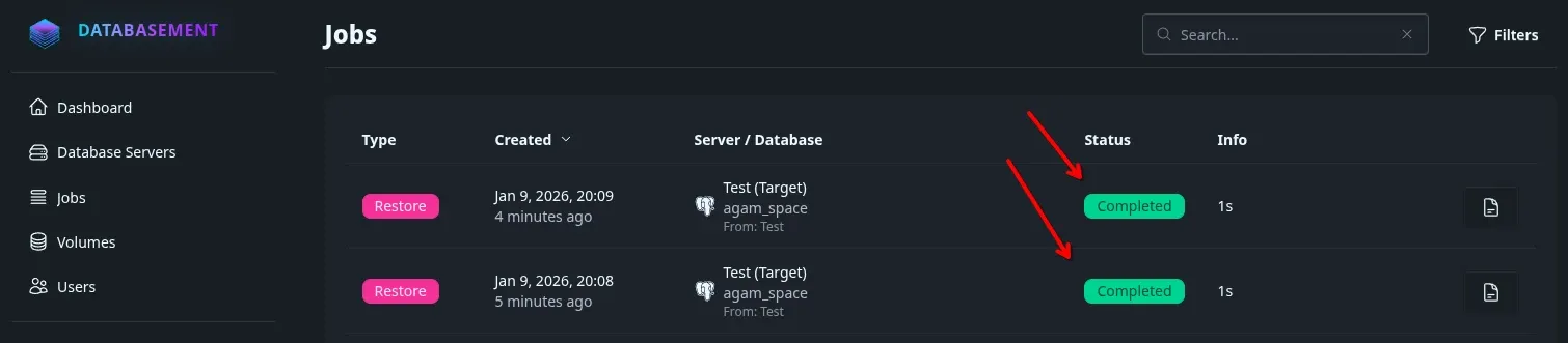 - Supervision en temps réel : Suivez l’avancement des sauvegardes et des restaurations grâce à des journaux de tâches détaillés.