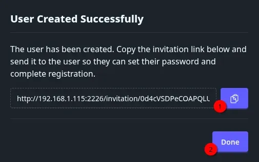 Vous allez recevoir en retour de la création de l'utilisateur, un lien à partager avec cet utilisateur :