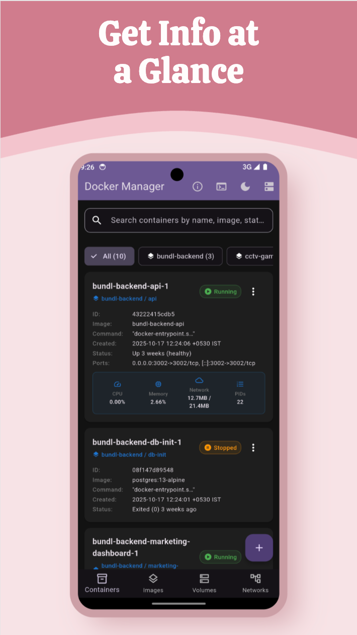- Filtrage par stack : Filtrez les conteneurs par stacks Docker Compose.