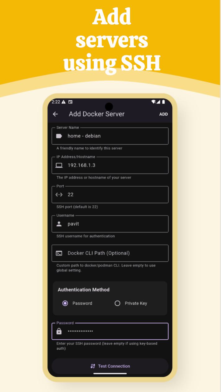 - Gestion de plusieurs serveurs : Ajoutez plusieurs serveurs avec une authentification SSH par mot de passe ou par clé.