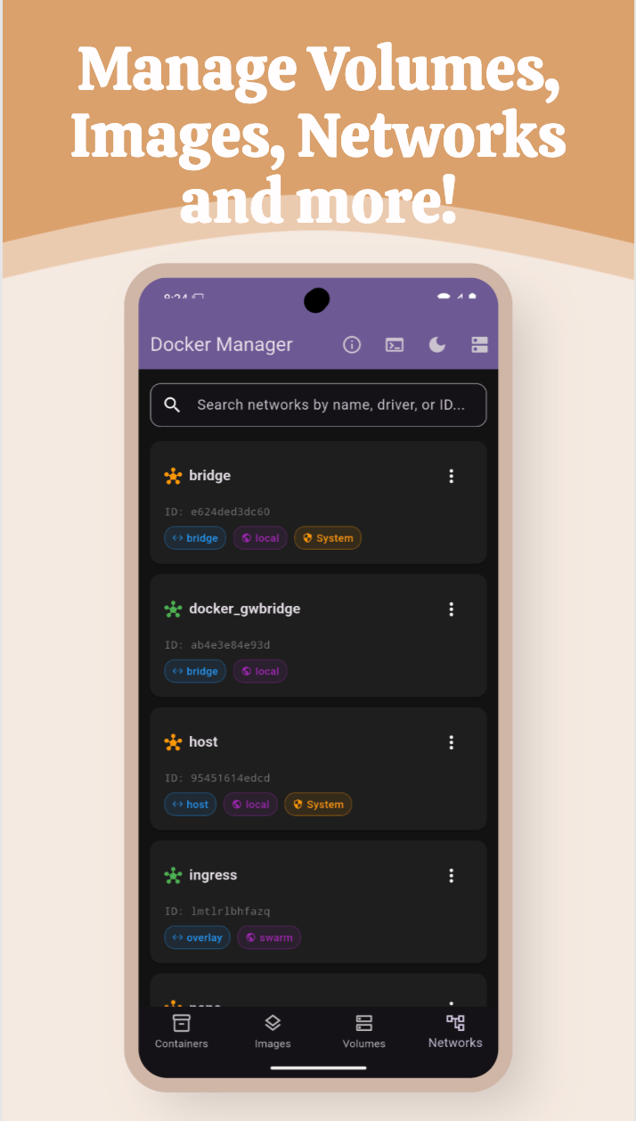 - Nettoyage du système : Supprimez les images, conteneurs et autres ressources inutilisés directement depuis l’application.