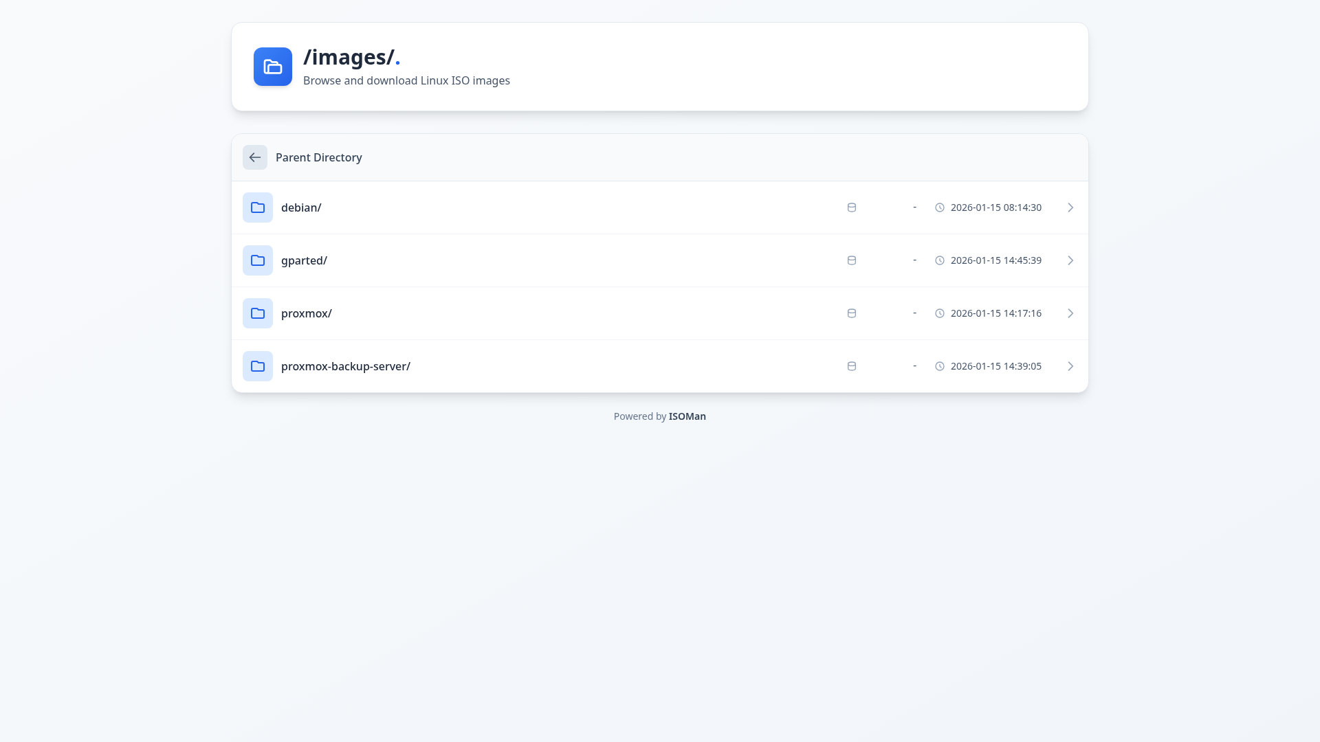 Idéal pour les homelabs ou administrateurs qui ont besoin de centraliser et organiser des ISOs depuis une interface, plutôt que de les télécharger manuellement.