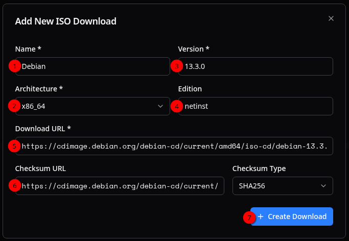 - 5 => Indiquez l'URL de téléchargement de l'ISO.