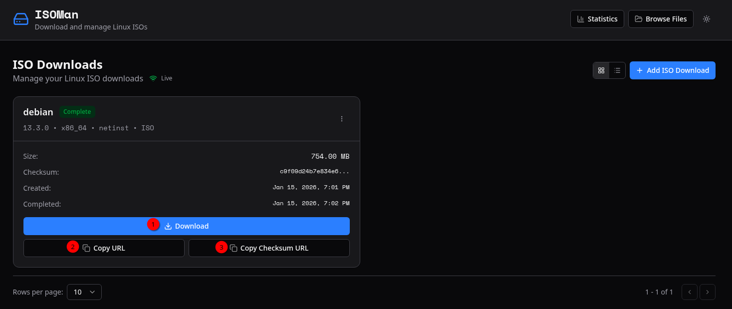Aujourd'hui nous allons parler d'ISOMan ! Un petit gestionnaire conçu pour centraliser et distribuer des fichiers ISO (mais aussi QCOW2, VMDK, VDI, IMG), qui va vérifier l'intégrité des fichiers téléchargés.