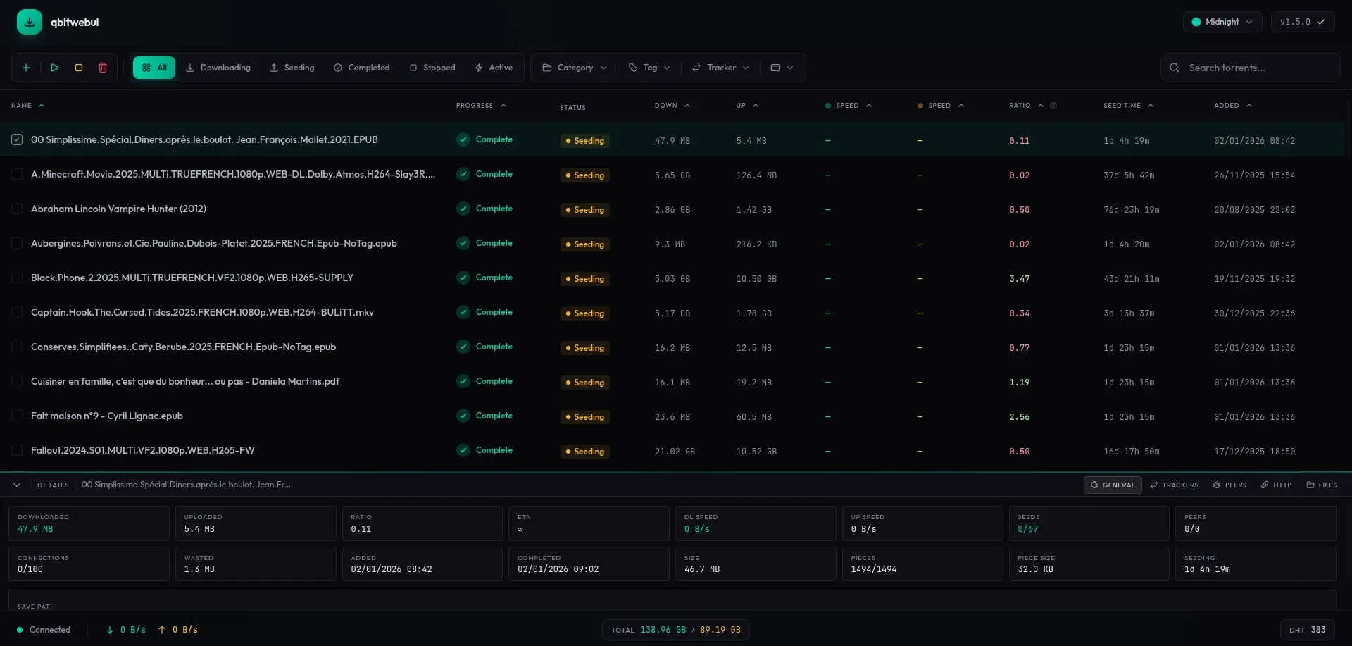 - Gestion multi-instances : gérez plusieurs instances de qBittorrent depuis un seul tableau de bord.