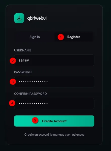 https://qbitwebui.mondomaine.com👤 Créer votre compte administrateur