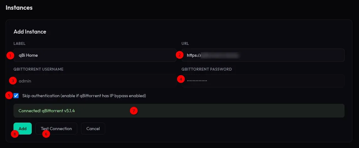 - 2 => Indiquez l'URL de l'instance qBitorrent.