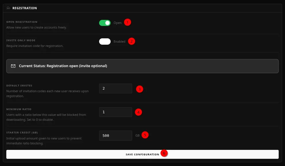 - 3 => Définir le nombre de codes d'invitation que chaque nouvel utilisateur reçoit lors de son inscription.