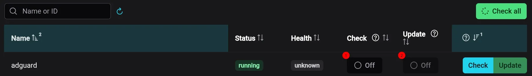 Vous avez le choix de surveiller ou non un container et de la mettre à jour automatiquement en cochant ou non les options :