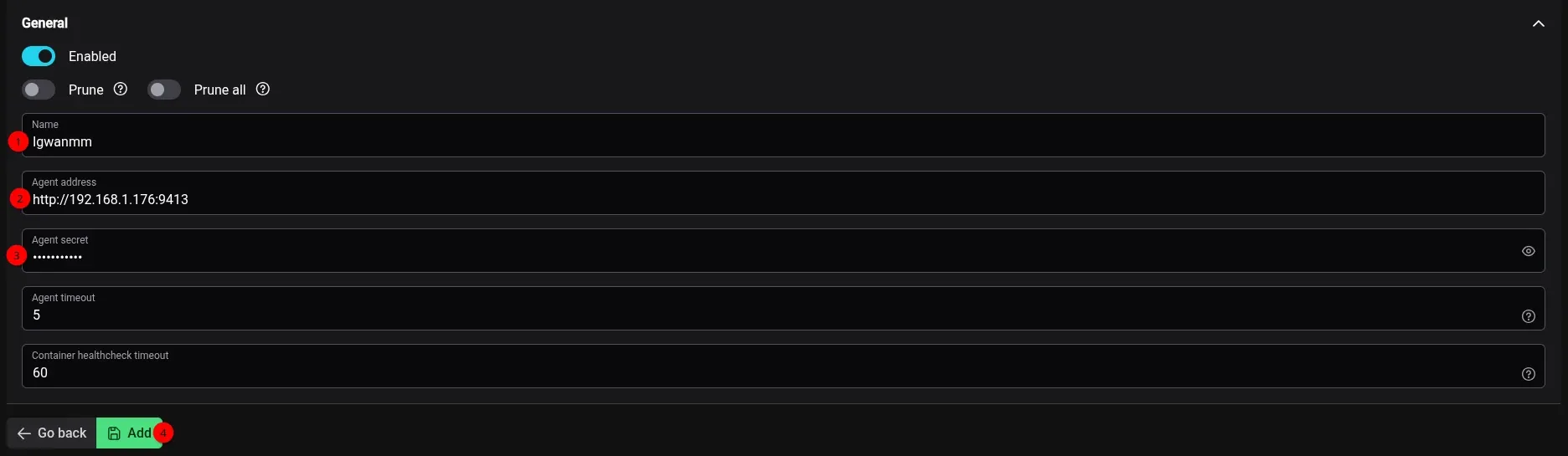 - 3 => Entrez le secret que vous avez configuré avec la variable AGENT_SECRET.