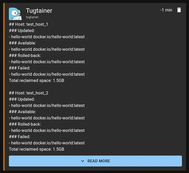 Dernière chose et pas des moindres, le message de l'équipe de Tugtainer :