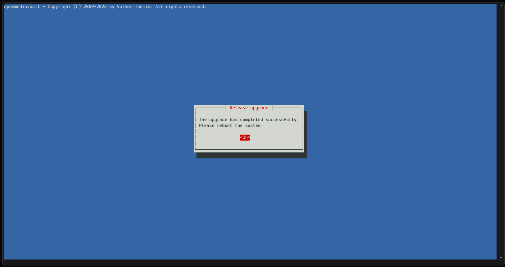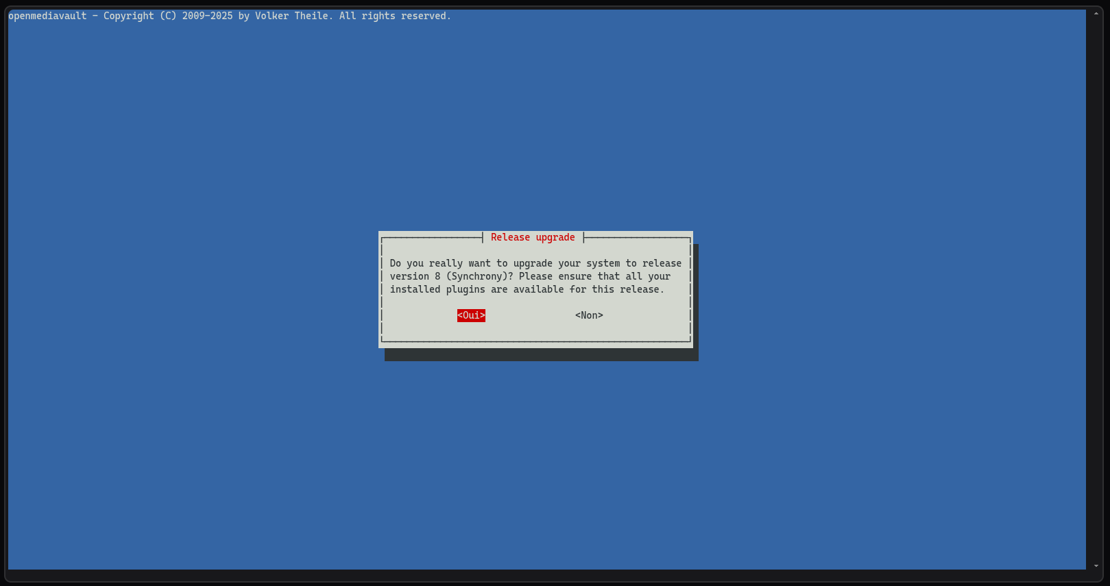 omv-release-upgradeUne fenêtre se lance, appuyez sur la touche Entrée de votre clavier :