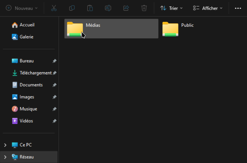 Je vais partager un dossier nommé Médias par exemple. Dossier qui contiendra d'autres dossiers en rapport : musiques, vidéos, ISO, documents.